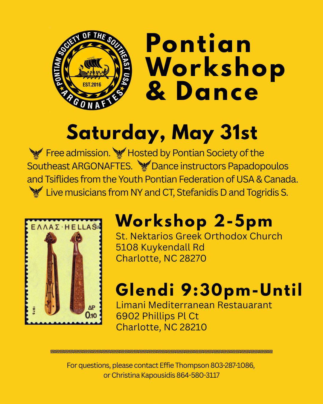 Join us on the 1st Pontian Workshop Dance  with/ Live Musician at Charlotte, NC